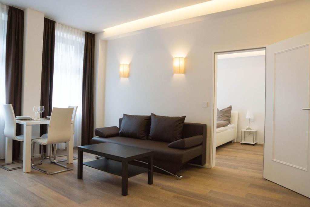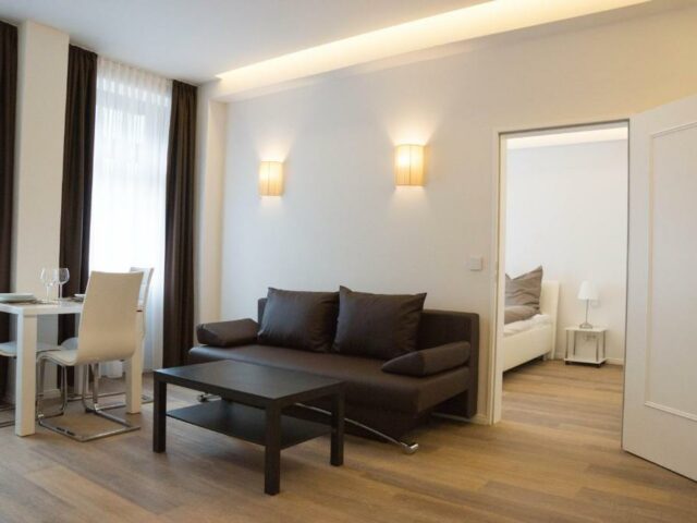 Die hellen Apartments im Boardinghouse Rosenstraße sind in neutralen Farben gehalten und mit modernen Möbeln eingerichtet. Jede Unterkunft verfügt über einen Flachbild-TV im Wohnzimmer, separate Schlafzimmer und eine Videogegensprechanlage.