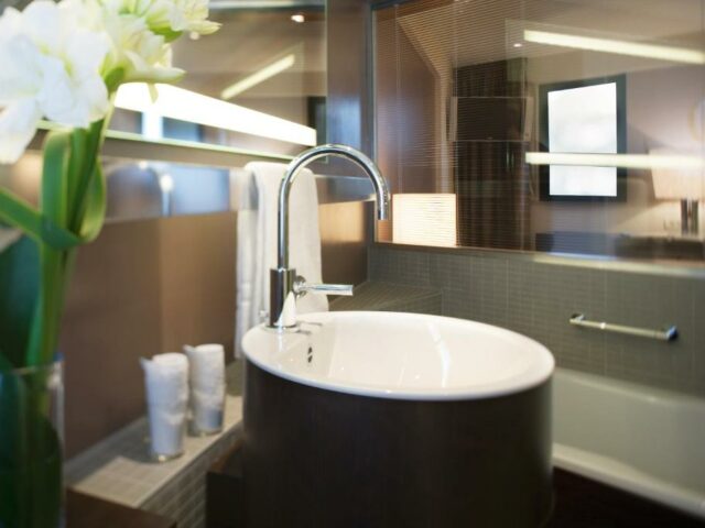 Das Mövenpick Hamburg verfügt über eine große Lobby mit Sichtmauerwerk sowie einen Saunabereich, der komplett mit einem ruhigen Ruheraum und Erlebnisduschen ausgestattet ist.