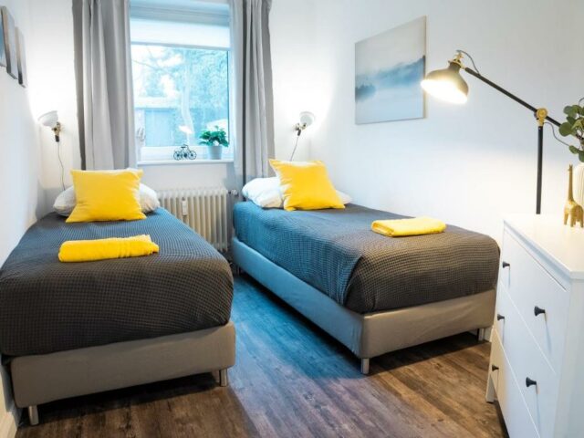 Das Apartment umfasst 2 separate Schlafzimmer, ein Wohnzimmer, eine voll ausgestattete Küche mit einem Geschirrspüler und einer Mikrowelle sowie 1 Bad. Handtücher und Bettwäsche werden im Apartment gestellt.