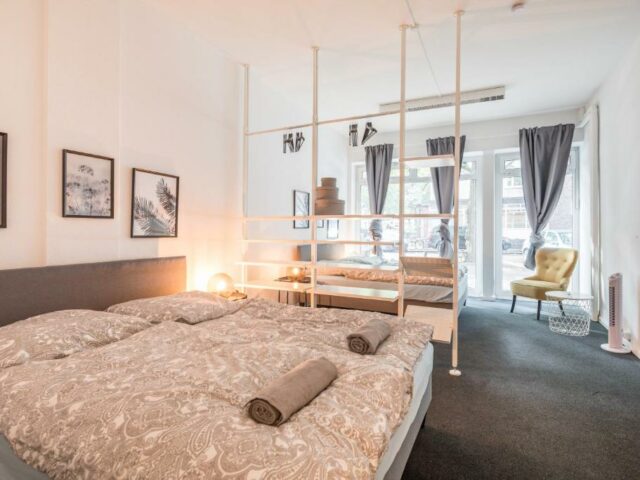 Das Spacious flat next to Goldbekkanal in Hamburg Winterhude begrüßt Sie in Hamburg, 5 km von der Binnenalster und der Hamburger Messe entfernt. Freuen Sie sich auf Unterkünfte mit Annehmlichkeiten wie kostenfreiem WLAN und einem TV. Die Unterkunft befindet sich 6 km vom Millerntor-Stadion und dem CCH-Congress Center Hamburg entfernt.